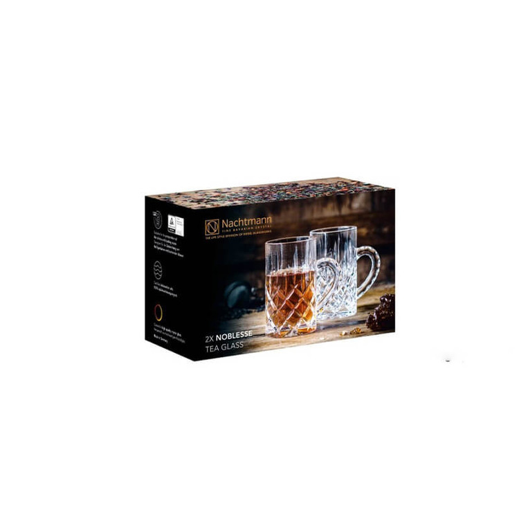 لیوان 2 پارچه ناخمن مدل Nachtmann Noblesse ساخته در کشور آلمان از جنس کریستال بدون سرب که مقاوم در برابر خط و خش و حرارت است و جلوه زیبایی دارد . طراحی این مجموعه شیشه ای کریستالی مدرن است که با شکل گل خطی می باشد . وزن هر لیوان 300 گرم که نشان دهنده خالص بودن آن می باشد . این لیوان ها در برابر حرارت مقاوم است و با خیال آسوده از نوشیدنی های داغ لذت ببرید .