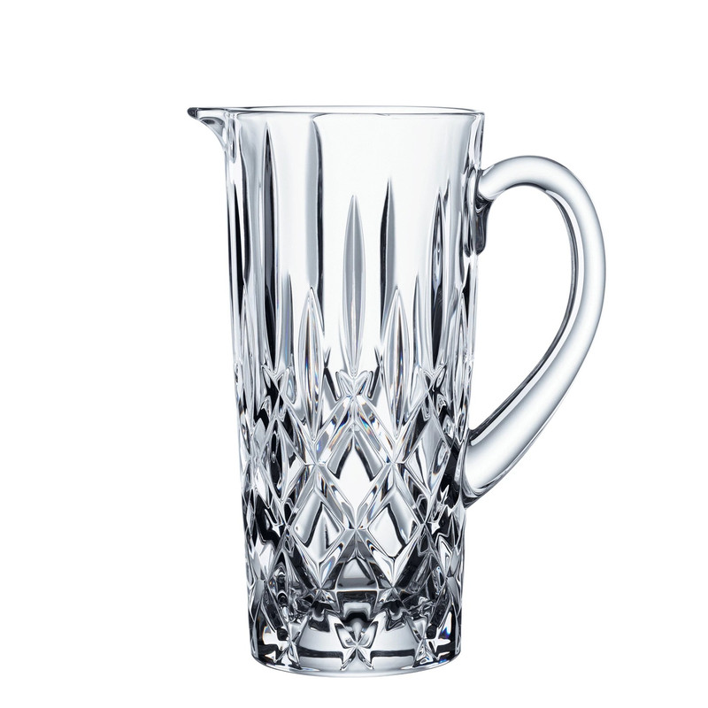پارچ و لیوان 5 پارچه ناخمن مدل Nachtmann Noblesse ساخته شده از کریستال که تضمین می کند در طول زمان درخشندگی خود را حفظ می کند . این مجموعه شامل 1 عدد پارچ به طول و عرض 11 سانتی متر و ارتفاع 23 سانتی متر و وزن 1550 گرم به همراه 4 عدد لیوان با طول و عرض 9 سانتی متر و ارتفاع 14 سانتی متر و وزن 350 گرم می باشد . طرح تیز و کشیده مدل نابلس جاودانه است .