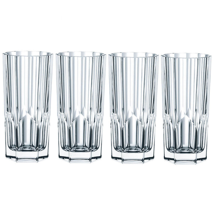 لیوان 4 پارچه ناخمن مدل Nachtmann Aspen Long ساخته در کشور آلمان از جنس کریستال سرب که مقاوم در برابر خط و خش است و جلوه زیبایی دارد . طراحی این مجموعه شیشه ای کریستالی مدرن به صورت خطی است . وزن هر لیوان 410 گرم که نشان دهنده خالص بودن آن می باشد .