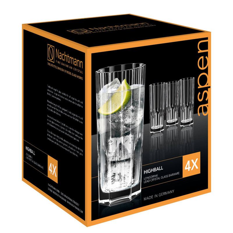 لیوان 4 پارچه ناخمن مدل Nachtmann Aspen Long ساخته در کشور آلمان از جنس کریستال سرب که مقاوم در برابر خط و خش است و جلوه زیبایی دارد . طراحی این مجموعه شیشه ای کریستالی مدرن به صورت خطی است . وزن هر لیوان 410 گرم که نشان دهنده خالص بودن آن می باشد .