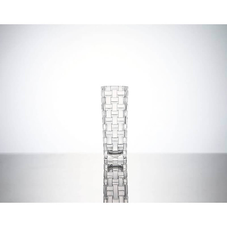 گلدان ناخمن مدل bossa nova ساخته از جنس کریستال بدون سرب که مقاوم در برابر خط و خش است و جلوه زیبایی به منزل شما می دهد. طراحی خاص و شبیه به بافت و دلنشین مناسب با هر سلیقه ای می باشد. ارتفاع این گلدان کوچک 16 سانتی متر می باشد.