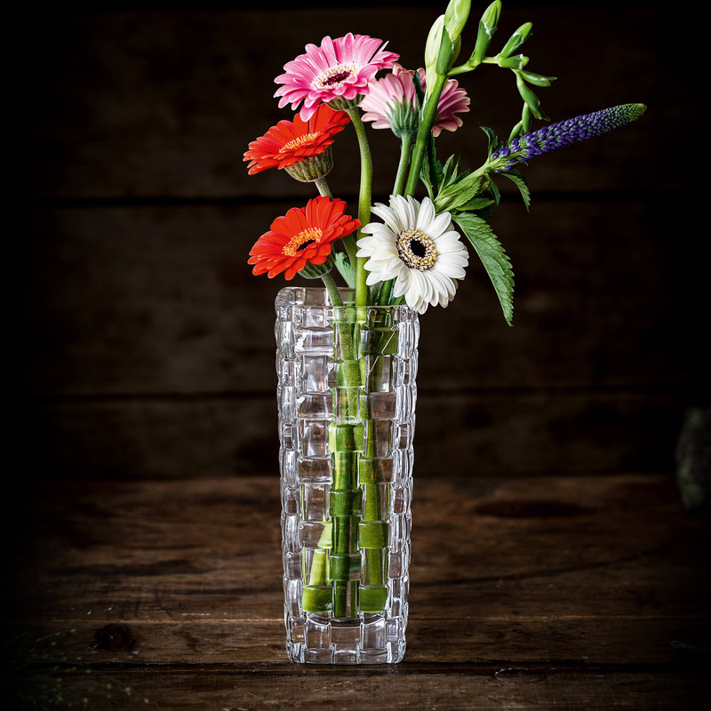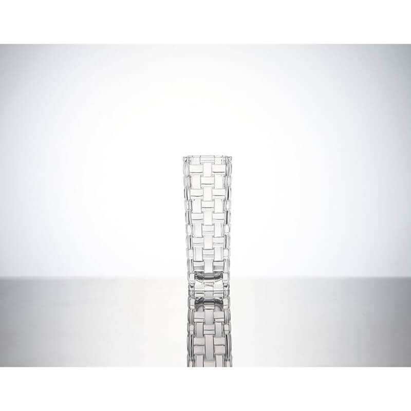 گلدان ناخمن مدل bossa nova ساخته از جنس کریستال بدون سرب که مقاوم در برابر خط و خش است و جلوه زیبایی به منزل شما می دهد. طراحی خاص و شبیه به بافت و دلنشین مناسب با هر سلیقه ای می باشد. ارتفاع این گلدان کوچک 16 سانتی متر می باشد.
