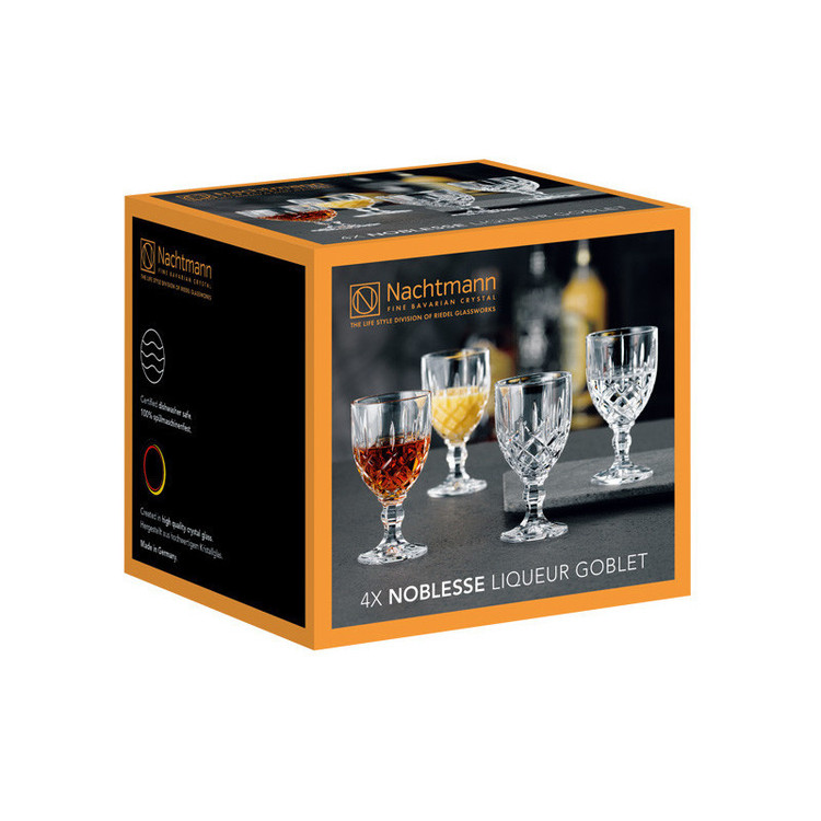 از ویژگی های لیوان 4 پارچه ناخمن مدل Nachtmann Noblesse Liqueur Goblet سایز کوچک آن است . کل مجموعه از شیشه کریستال با کیفیت بالا ساخته شده است و به راحتی قابل مراقبت است و می توان آن را در ماشین ظرفشویی تمیز کرد . سری Noblesse حسی از لوکس را به خانه شما می آورد و احیای طراحی کلاسیک را به شما می دهد . این محصولات که به زیبایی از بهترین کریستال برش خورده اند ، برای هرکسی که می خواهد درخشندگی جدیدی را به خانه خود بیاورد عالی است . وزن هر لیوان 45 گرم و ظرفیت آن 60 میلی لیتر می باشد .