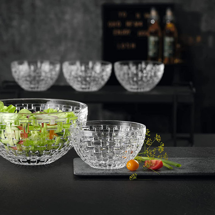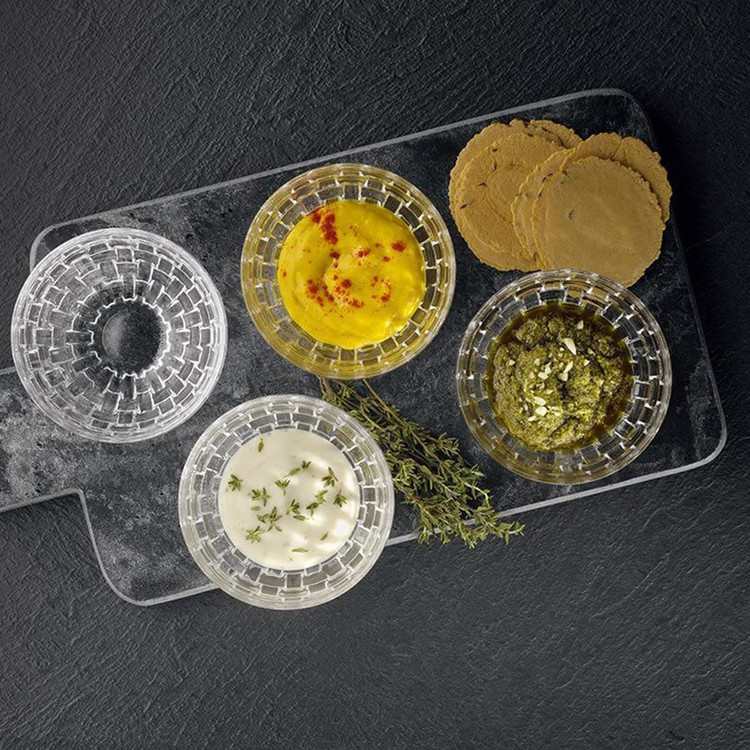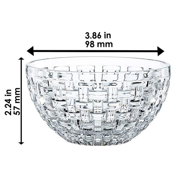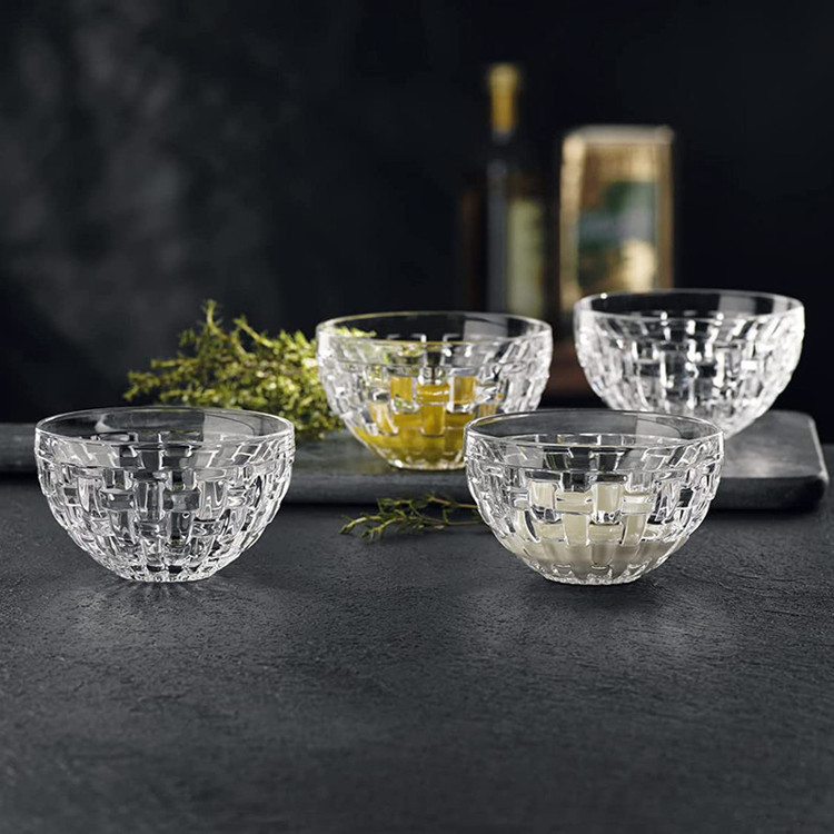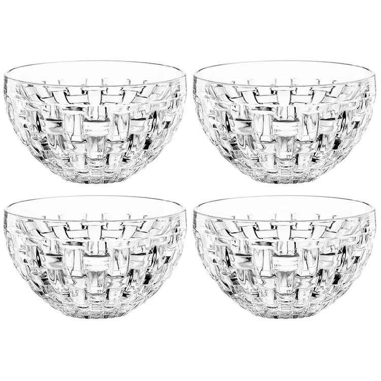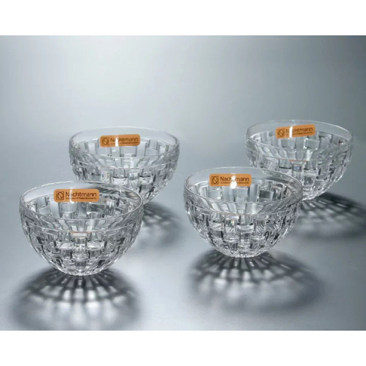 پیاله ناخمن 4 پارچه مدل Nachtmann Bossa Nova Round Crystal ساخته شده در کشور آلمان از جنس کریستال بدون سرب است استفاده این کاسه برای سرو هر نوع غذای سرد مخصوصا دیپ و سس و ماست ایده آل است . طراحی Bossa Nova با حساسیت جالب که برای آن نامگذاری شده اس، به دکوراسیون میز زیابیی می بخشد که دارای طرح بافت سبد بافتی است . هر پیاله 180 گرم و قطر 10 سانتی متر و ارتفاع 5.5 سانتی متر دارد .