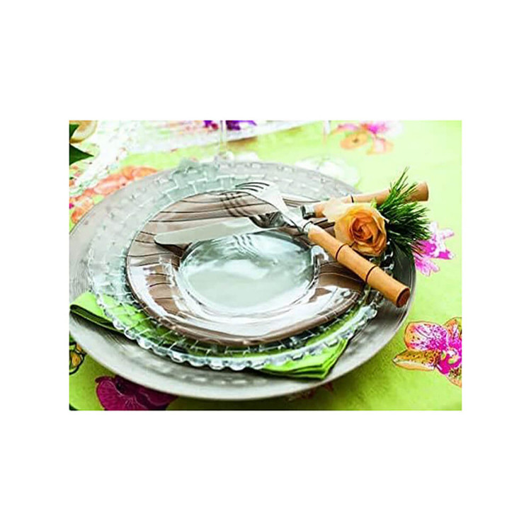 بشقاب 2 پارچه ناخمن مدل Nachtmann BOSSA NOVA سرو غذا را با ظاهری عالی ارائه میدهد . طرح بافت آن از جنس کریستال نیز از بیرون به خوبی قابل مشاهده هستند . انعکاس در کاسه درخشان بر تازگی و رنگ مواد تشکیل دهنده زیبایی خاصی دارد . این بشقاب از جنس کریستال بدون سرب و در کشور آلمان تولید شده است . طول و عرض بشقاب 15 سانتی متر می باشد .