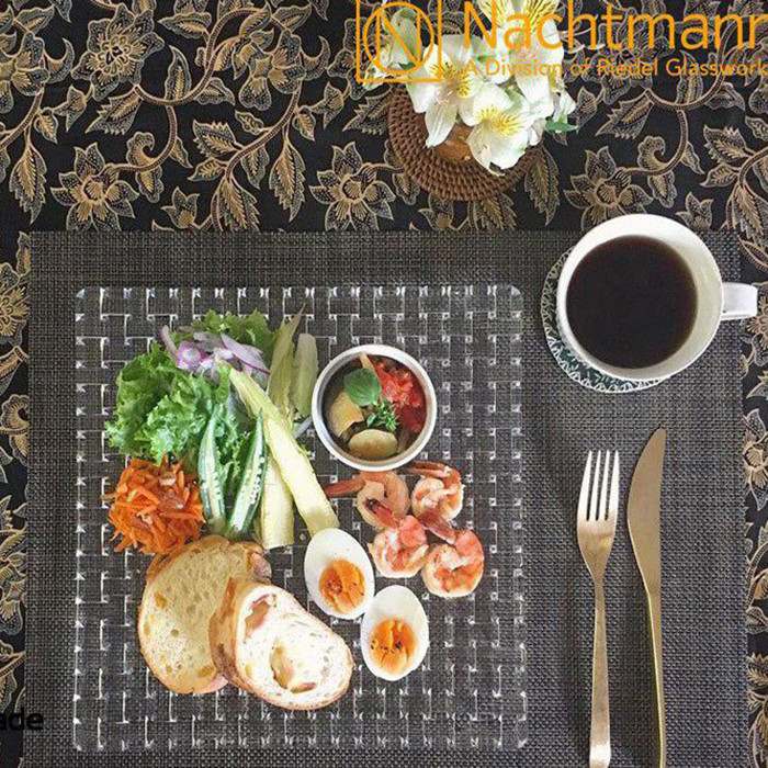 بشقاب ناخمن مدل Nachtmann BOSSA NOVA سرو غذا را با ظاهری عالی ارائه میدهد . طرح بافت آن از جنس کریستال نیز از بیرون به خوبی قابل مشاهده هستند . انعکاس در کاسه درخشان بر تازگی و رنگ مواد تشکیل دهنده زیبایی خاصی دارد . این بشقاب از جنس کریستال بدون سرب و در کشور آلمان تولید شده است .
