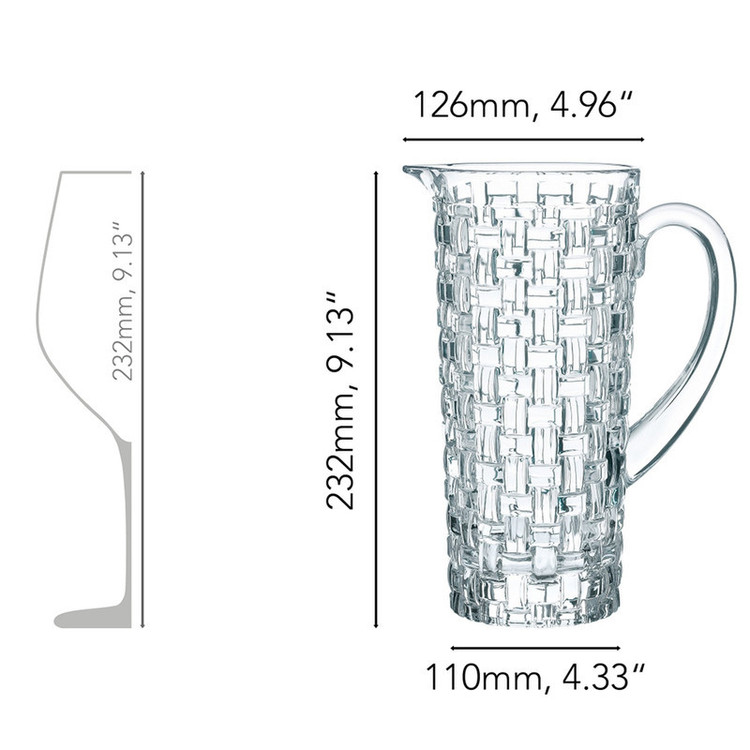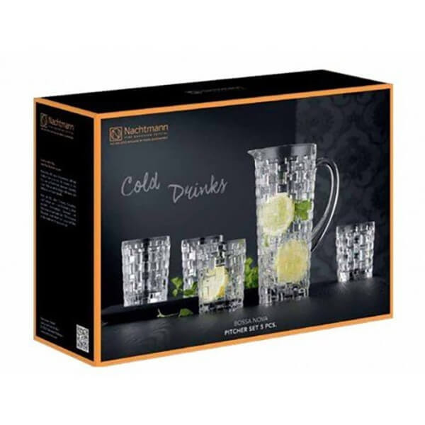 پارچ ناخمن مدل Bossa Nova ساخته شده از کریستال بدون سرب در کشور آلمان است که تضمین می کند در طول زمان درخشندگی خود را حفظ می کند . شامل 2 عدد پارچ به طول 17 سانتی متر و عرض 11 سانتی متر و ارتفاع 23 سانتی متر و وزن هریک 1500 گرم می باشد .