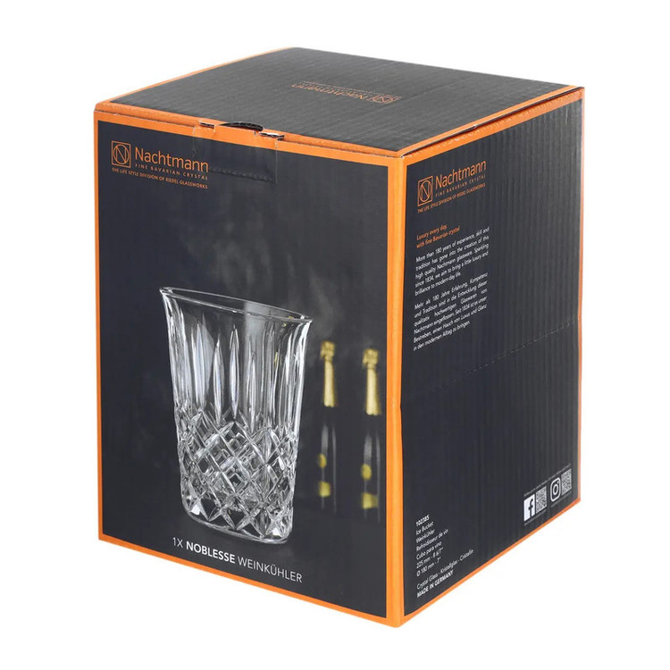 ظرف یخ ناخمن مدل Nachtmann Noblesse winechampagne cooler ساخته شده از کریستال بدون سرب . قطر آن 18 سانتیمتر است و ارتفاع 22 سانتیمتر خود به خود جلب توجه می کند . قابل شستشو در ماشین ظرفشویی است . فرم مجلل مدل آسپن که ، درخشش کریستال بدون سرب با کیفیت بالا و ماهرانه را به نمایش می گذارد . حالا از میهمانی خود لذت ببرید .