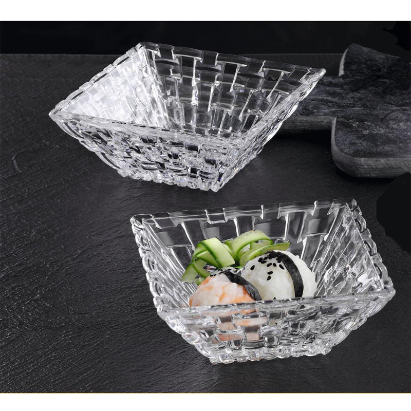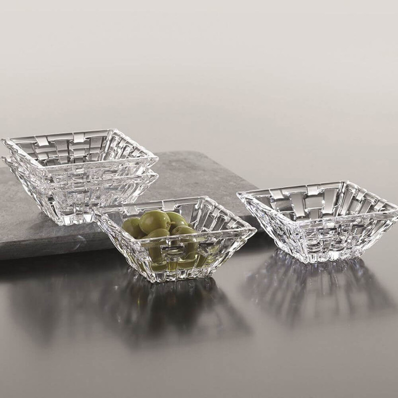 پیاله ناخمن 2 پارچه مدل Nachtmann Bossa Nova ساخته شده در کشور آلمان از جنس کریستال بدون سرب است استفاده این کاسه برای سرو هر نوع غذای سرد مخصوصا دیپ و سس و ماست ایده آل است . طراحی Bossa Nova با حساسیت جالب که برای آن نامگذاری شده اس، به دکوراسیون میز زیابیی می بخشد که دارای طرح بافت سبد بافتی است . هر پیاله 300 گرم و قطر 12 سانتی متر و ارتفاع 4.5 سانتی متر دارد .