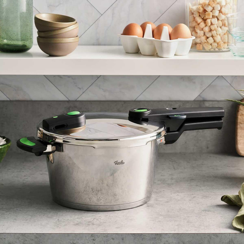 ساخته شده از استیل 18/10، گنجایش 6 لیتر،قابلیت استفاده با کمترین میزان آب جهت پخت حجم کم مواد غذایی، کف چدنی، کفه دارای سیستم پخش یکنواخت حرارت، دارای سه مرحله سوپاپ ایمنی، سوپاپ نمایشگر حجم بخار داخلی، تنها زودپز موجود در بازار که قابلیت تحمل بخار تا حجم 150 کیلو پاسکال را داراست، دارای سبد و پایه بخارپز جهت پخت بخارپزی سریع مواد غذایی، واشر و سوپاپ از جنس سیلیکونی با طول عمر بالا، ساخت کشور آلمان