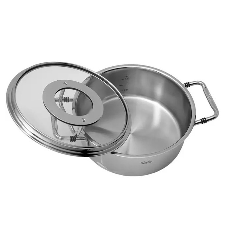 قابلمه 24 سانت فیسلر مدل FISSLER BONN با درب استیل و شیشه و طراحی زیبا و ساخت در کشور آلمان آشپزی را آسان تر می کند . لبه های پهن قابلمه باعث می شود هنگام خالی کردن آن قطره ای آب بیرون نریزد . این سری قابلمه برای انواع اجاق گاز از جمله القایی مناسب است . کف سه لایه با توزیع یکنواخت گرما و ذخیره گرما برای صرف جویی در مصرف می باشد . جنس استیل ضد زنگ 18/10 قابل شستشو در ماشین ظرفشویی ، تمیز کردن آسان ، ایمن در فر ، بی مزه ( مزه غذا در این قابلمه ها تغییر نمی کند ) و مقاوم در برابر اسید می باشد .