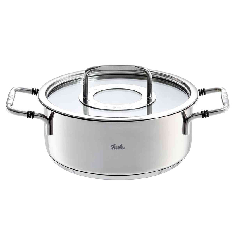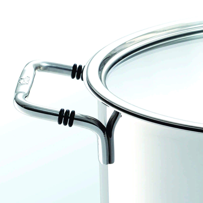 قابلمه 24 سانت فیسلر مدل FISSLER BONN با درب استیل و شیشه و طراحی زیبا و ساخت در کشور آلمان آشپزی را آسان تر می کند . لبه های پهن قابلمه باعث می شود هنگام خالی کردن آن قطره ای آب بیرون نریزد . این سری قابلمه برای انواع اجاق گاز از جمله القایی مناسب است . کف سه لایه با توزیع یکنواخت گرما و ذخیره گرما برای صرف جویی در مصرف می باشد . جنس استیل ضد زنگ 18/10 قابل شستشو در ماشین ظرفشویی ، تمیز کردن آسان ، ایمن در فر ، بی مزه ( مزه غذا در این قابلمه ها تغییر نمی کند ) و مقاوم در برابر اسید می باشد .
