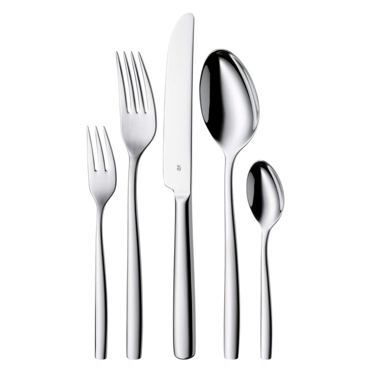 سرویس قاشق و چنگال 60 پارچه دبلیو ام اف مدل WMF PALMA شامل قاشق و کارد و چنگال غذا خوری برای 12 نفر ، 12 عدد قاشق قهوه و چای خوری و 12 عدد چنگال میوه خوری را ارائه می دهد . زیبایی تضادها : با سرویس قاشق و چنگال 60 پارچه دبلیو ام اف مدل WMF Alteo ، هر تجربه غذاخوری را به تجربه ای چشم نواز تبدیل کنید . با الهام از معماری مدرن و سطح صیقلی که یادآور جواهرات گرانبها هستند . این مجموعه کارد و چنگال ارگونومیک با ارائه زیبایی شناسی ظریف و جسورانه و در عین حال جاودانه ، کاملاً در هر دستی قرار میگیرد .