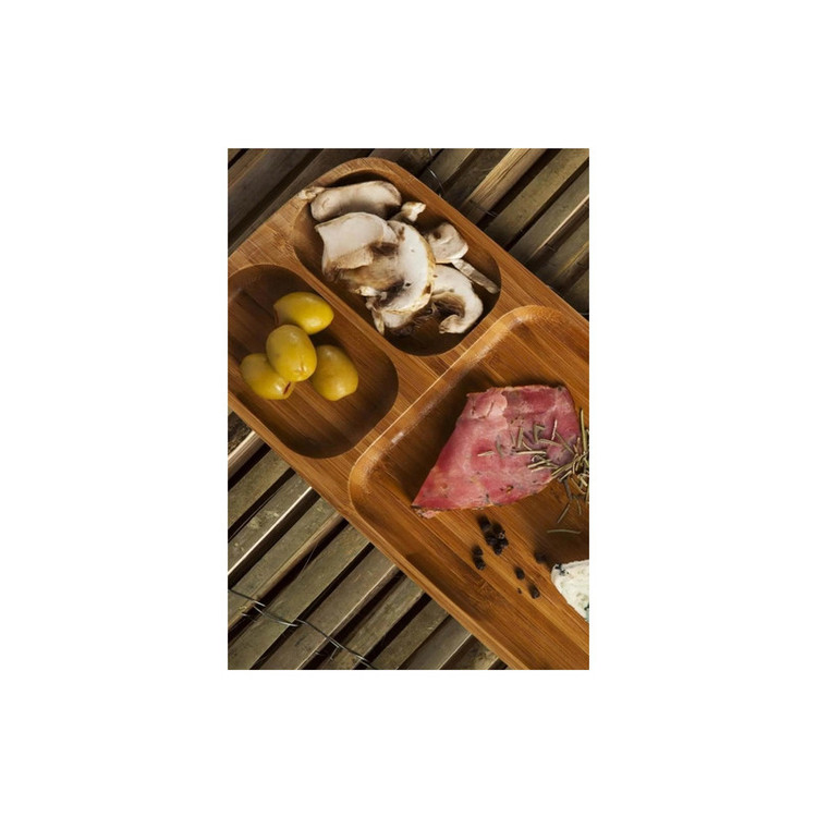 سینی سرو سهقسمتی Globy از جنس بامبو طبیعی، با طراحی کاربردی و زیبا، انتخابی ایدهآل برای سرو انواع غذا، پیشغذا و میانوعدههاست. این سینی با ابعاد 13.8×34 سانتیمتر، امکان سرو سه نوع غذا بهصورت جداگانه و بدون ترکیب طعمها را فراهم میسازد. استفاده از بامبو در ساخت این محصول، علاوه بر ظاهر شیک و طبیعی، ویژگیهایی مانند مقاومت در برابر شکستگی و سهولت در تمیزکاری را نیز به همراه دارد. این سینی مناسب برای استفاده در منزل، کافه، رستوران، هتل و بار بوده و کاربرد گستردهای برای سرو صبحانه، اسنک، سیبزمینی سرخشده و انواع خوراکی با سس دارد