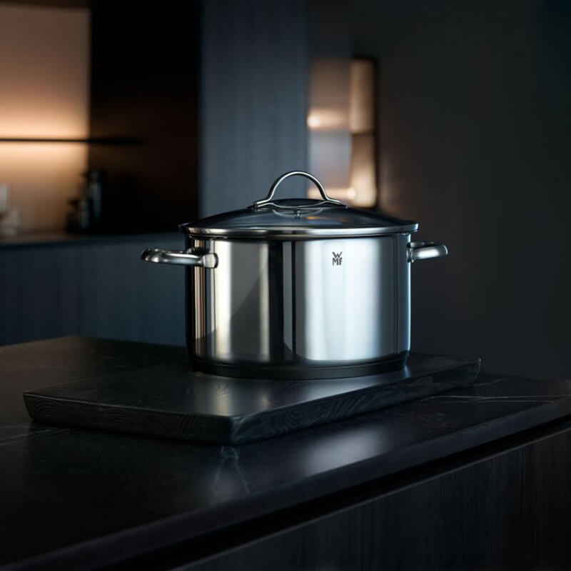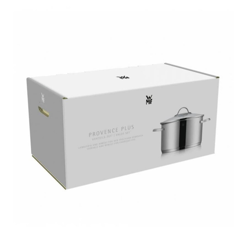 سرویس قابلمه 9 پارچه دبلیو ام اف مدل WMF PROVENCE PLUS از 9 قطعه ساخته شده که جنس آن از فولاد کرومارگان ضد زنگ است و به لطف درب استیل و شیشه مقاوم در برابر حرارت و با کیفیت بالا که تا 250 درجه سانتیگراد در برابر حرارت مقاوم است . داخل قابلمه ها با درجه بندی مشخص شده آشپزی را راحت تر می کند . کف سه لایه جهانی ثبت شده TransTherm به لطف توزیع و حفظ بهینه گرما ، هنگام پخت و پز در مصرف انرژی صرفه جویی می کند . این سرویس شامل قابلمه سایز 16 سانت با ظرفیت 1.9 لیتر و سایز 20 کوتاه با ظرفیت 2.5 لیتر و سایز 20 بلند آن با ظرفیت 3.3 لیتر و قابلمه 24 سانت با ظرفیت 5.7 لیتر و شیرجوش سایز 16 سانتی متر آن با ظرفیت 1.7 لیتر می باشد .