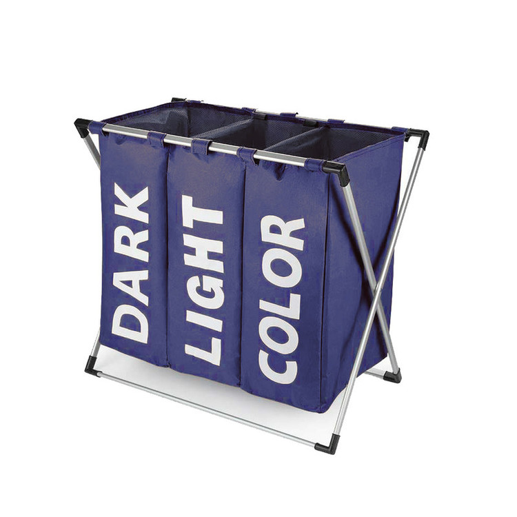 این سبد لاندری دارای سه مخزن جدا برای تفکیک لباس و درب توری و دستگیرههای بلند برای حمل است.جنس پارچه آن برزنتی و فریم دور آن تمام آلمینیومی و بسیار سبک و با قابلیت جمع شدن است که باعث میشود فضای کمی را اشغال کند.