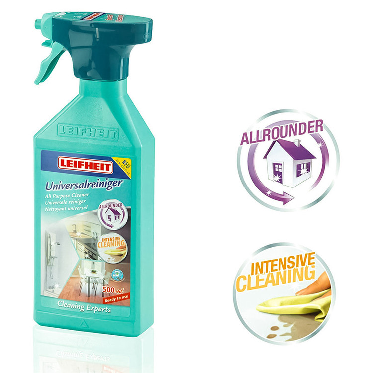 اسپری پاک کننده چند منظوره سطوح سطوح لایف هایت کد 41411 از جمله محصولات بسیار کاربردی و پرمصرف برند آلمانی لایف هایت می باشد. امروزه پاک کننده ها به صورت تخصصی و برای مقاصد مختلف تولید می شوند اما گاهی نیاز به محلولی داریم که با آرامش خاطر بتوانیم از آن روی طیف وسیعی از سطوح استفاده کنیم. اسپری پاک کننده سطوح کد 41411 به لطف فرمولاسیون خاص خود قابل استفاده روی انواع سطوح قابل شستشو از جمله انواع شیشه اکرولیک و پلکسی،استیل ضد زنگ، کاشی و چینی و سرامیک، مرمر و گرانیت، سطوح پلاستیکی PVC و لینولئوم، لوازم خانگی، کابینت آشپزخانه، درب و چارچوب،انواع رادیاتور و حتی دیوارهای رنگ روغنی می باشد. این پاک کننده رایحه ای ملایم و خوش آیند داشته و به دلیل قدرت پاک کنندگی و جذب خارق العاده ای که دارد قابلیت پاک کردن انواع لکه های بجا مانده از چربی غذا و اثر چسب و انگشت را به راحتی فراهم می آورد و در عین حال اثری محافظتی بر روی سطوح داشته و همزمان باعث درخشندگی و مهار بوهای نامطبوع نیز می شود.تفنگ اسپری این مایع دارای قابلیت باز و بسته و تنظیم میزان پاشش می باشد و به دلیل پودر کنندگی بسیار بالا میزان مصرف را تا 50% کاهش می دهد.
