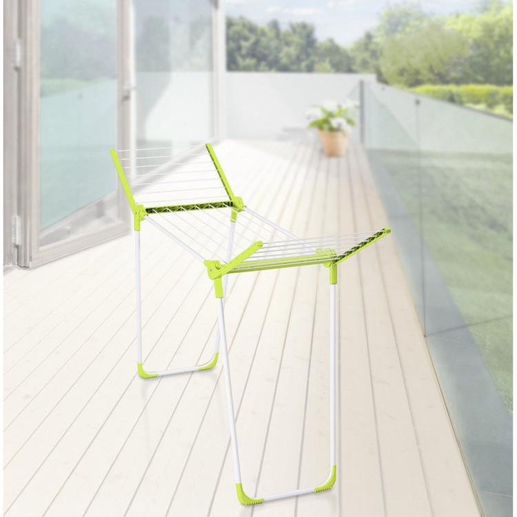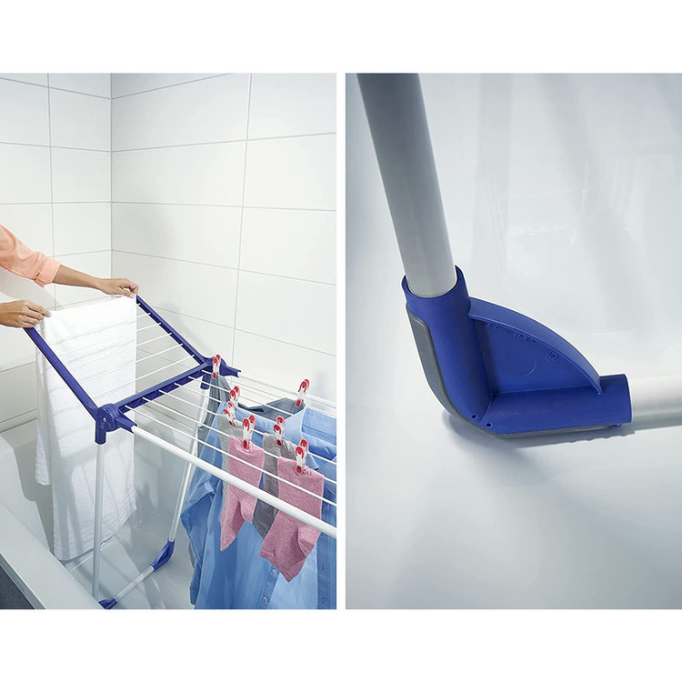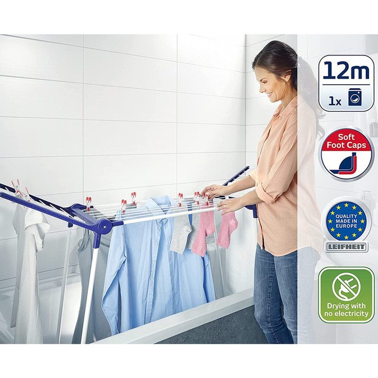 برند آلمانی لایف هایت از پیشگامان طراحی و تولید ابزار و لوازم نظافت و شستشو می باشد. این برند علاوه بر این در زمینه تولید محصولات مرتبط به آشپزخانه نیز پیشرو بوده و محصولات این برند در بیش از 80 کشور جهان از محبوبیت و مقبولیت بسیار بالایی برخودار می باشد. بند رخت مدل PEGASU SOLID کد 120 از جمله محصولات بسیار پرطرفدار این برند محبوب آلمانی می باشد که تخصص ویژه ای در طراحی و ساخت بند رخت های داخلی دارد. این مدل وزنی در حدود 3 کیلو گرم دارد که نسبتا سبک بوده و به راحتی قابل جابحایی به هر نقطه از منزل و یا فضای خارج از آن می باشد. آلیاژ فلز بکار رفته در این بند رخت که با رنگ اپوکسی پوشانده شده به لطف مقاومت و ضد زنگ بودن برای سال های متمادی قابل استفاده می باشد. ویژگی مهم این بند رخت عرض کم آن است که باعث می شود در فضاهای بسیار باریک مثل داخل وان حمام و انباری ها نیز قابل استفاده باشد. در واقع در طراحی این بند رخت نگاه ویژه ای به ایجاد قابلیت استفاده در فضاهای باریک شده است. این بند رخت دارای قسمتی میانی به طول 79 و عرض 43 و دو باله متحرک هر یک به طول 35 و عرض 43 سانتی متر می باشد. لبه انتهایی این باله ها به هنگام باز شدن حدود 93 سانتیمتر از زمین فاصله داشته و برای لباس های بلند تر مثل شلوار فضای مناسبی را فراهم کرد. ارتفاع این بند رخت به هنگام برپا شدن و در قسمت میانی 76 سانیمتر بوده و فضایی معادل 12 متر طناب را برای شما فراهم می آورد که به اندازه لباس های یک سری شستشو با ماشین می باشد. این بند رخت به هنگام باز شدن کامل طولی معادل 149 ، عرضی معادل 43 و ارتفاعی معادل 76 الی 93 سانتیمتر دارد و برای آویزان کردن البسه بلندی مثل شلوار نیز مناسب و قابل استفاده می باشد. پایه این بند رخت فرمی V شکل داشته و چهار تکیه گاه لاستیکی و نرم که روی آن در نظر گرفته شده باعث می شود تا همیشه روی سطوح صاف متعادل باشد.این بند رخت به هنگام عدم استفاده قابل تا شدن می باشد و به شکل صفحه ای به ابعاد 87x45 سانتی متر قابل قرار گرفتن زیر تخت یا فضای پشت یخچال یا درب انبار می باشد.