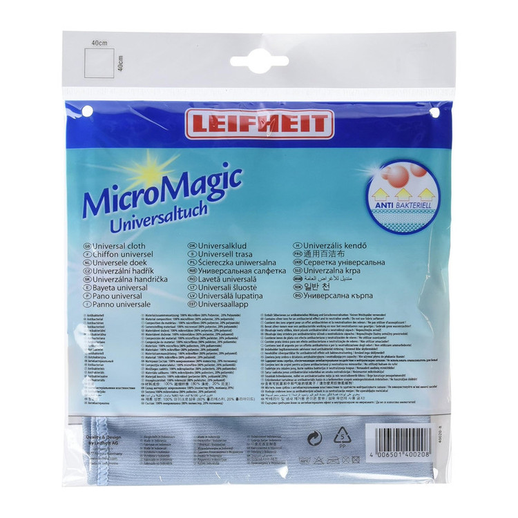 دستمال یونیورسال لایف هایت تولید شده از جنس الیاف میکروفایبر با ترکیب 80% پلی استر و 20% پلی آمید می باشد و مناسب نظافت و جرم زدایی استیل و شیر آلات آشپزخانه و سرویس های بهداشتی بوده و با توجه به آنتی باکتریال بودن پارچه حداکثر بهداشت را به ارمغان می آورد. دارای یونهای نقره با خاصیت از بین بدن بو می باشد. ایعاد دستمال 40*40 سانتیمتر.