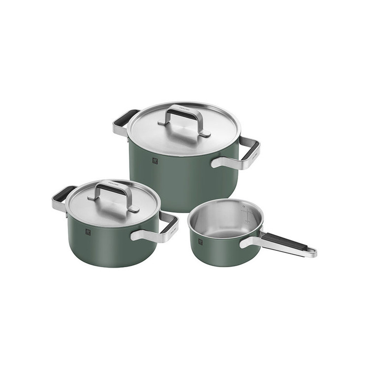 سرویس قابلمه ۵ پارچه زویلینگ مدل پیور شامل قابلمه سایز ۲۴ با در،قابلمه ی سایز ۲۰ یا در و قابلمه ی سایز ۱۶ بدون در یکی از بهترین و جدیدترین سرویس های استیل از این برند محبوب و پر طرفدار آلمانی میباشد.تمامی قطعات ساخت و مونتاژ کشور آلمان هستند و تضمین ۳۰ سال ضمانت توسط این شرکت شده اند