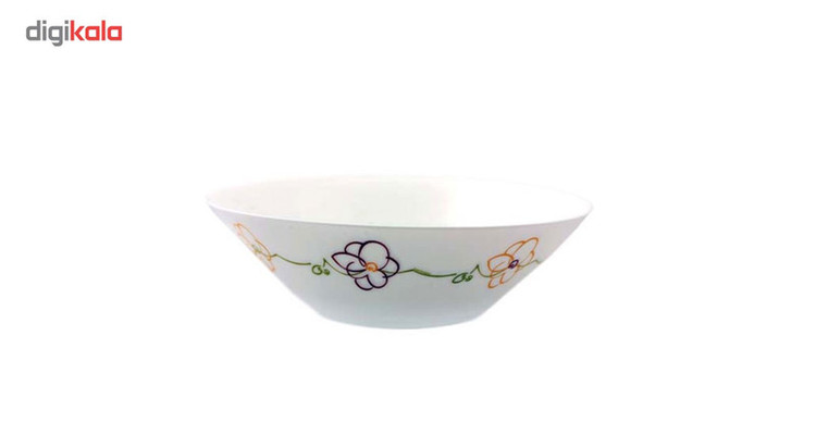 شامل: یک دیس 24*35 870 گرم 6 بشقاب غذا خوری 21.5 سانتی متر 510 گرم 6 پیش دستی 19 سانتی متر 290 گرم 6 پیاله 12 سانتی متر 150 گرم 6 خورش خوری 21.5 سانتی متر 380گرم یک ظرف سالاد .27 سانتی متر 720 گرم