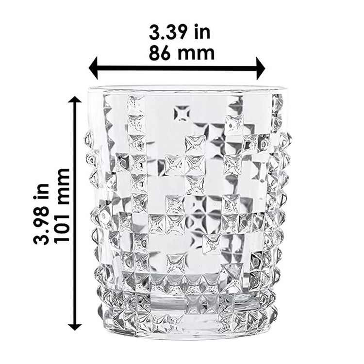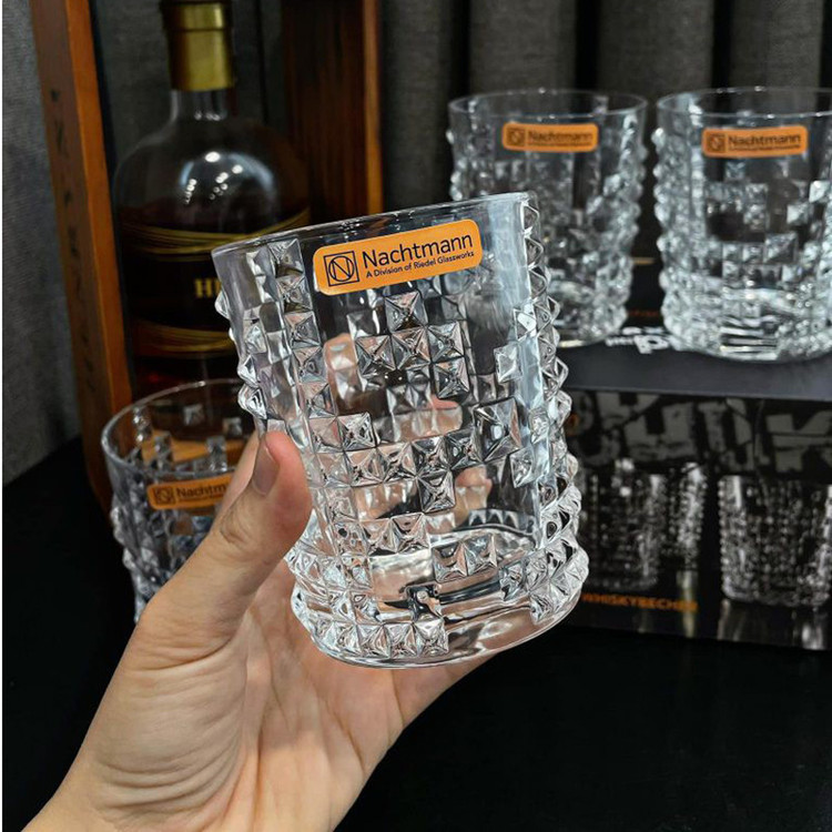 لیوان 4 پارچه ناخمن مدل Nachtmann Punk Whisky ساخته در کشور آلمان از جنس کریستال سرب که مقاوم در برابر خط و خش است و جلوه زیبایی دارد . طراحی این مجموعه شیشه ای کریستالی مدرن به صورت برجسته است که با شکل مربع های کوچک زیبایی خاصی دارد . وزن هر لیوان 340 گرم که نشان دهنده خالص بودن آن می باشد .
