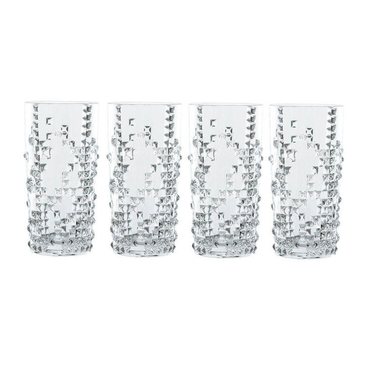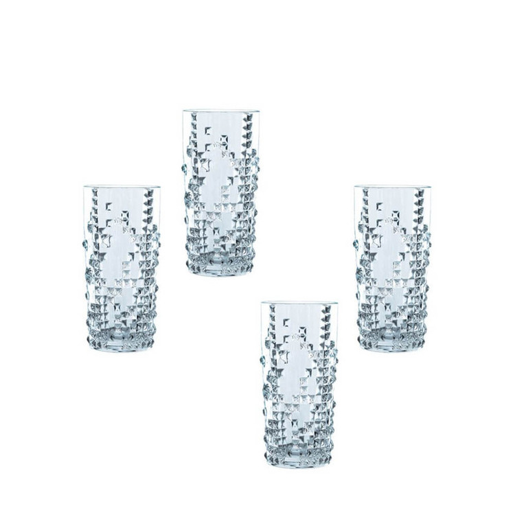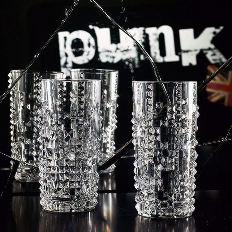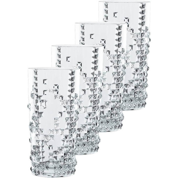 لیوان 4 پارچه ناخمن مدل Nachtmann Punk long Whisky ساخته در کشور آلمان از جنس کریستال بدون سرب که مقاوم در برابر خط و خش است و جلوه زیبایی دارد . طراحی این مجموعه شیشه ای کریستالی مدرن به صورت برجسته است که با شکل مربع های کوچک زیبایی خاصی دارد . وزن هر لیوان 440 گرم که نشان دهنده خالص بودن آن می باشد .